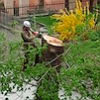 Venerdì 8 aprile uno degli storici ippocastani della piazza di Castasegna è stato sottoposto ad una potatura a dir poco radicale ed ora si presenta in una nuova veste “dimezzata”.