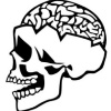 Al cabaretist al stà in pé dadree üna testa cun al cranio evert in modo ca ‘s veza al cervel.