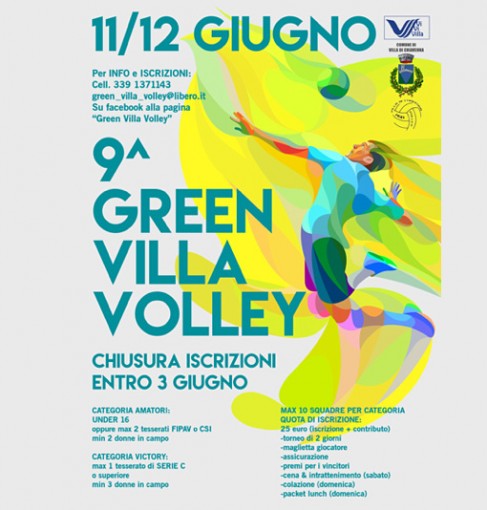 Green Villa Volley, giunto quest’anno alla sua nona edizione, intende organizzare per il fine settimana dell’11 e 12 giugno 2016 il torneo di pallavolo misto diviso nelle categorie amatoriale e agonistica. La manifestazione dal 2008 si disputa sui campi del centro sportivo comunale in località Posmotta.