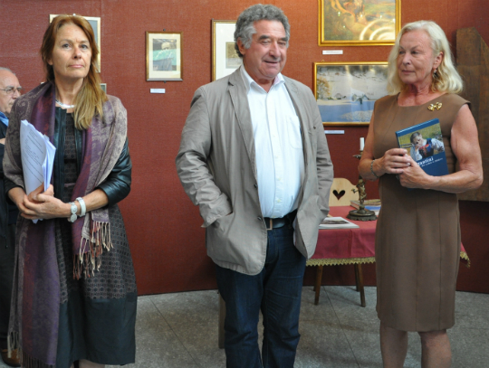 Dora Lardelli, curatrice della mostra (a sinistra), con Guido Magnaguagno, presidente della Società Segantini Maloja, e Ragnhild Segantini. I tre storici dell’arte presentano la nuova esposizione composta da opere originali e documenti in parte inediti.