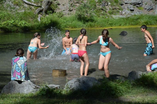 Deludente è stato il laghetto, raggiunto con una mezz’oretta di cammino, che si è rivelato essere poco più che una pozza di acqua melmosa e gelata. Ma dopo il primo sconforto, quasi tutti hanno avuto il coraggio di immergersi, comprese un paio di monitrici e naturalmente la simpatica Kira, cane di Madlaina. E lo spazio intorno è stato perfetto per giocare a nascondino.