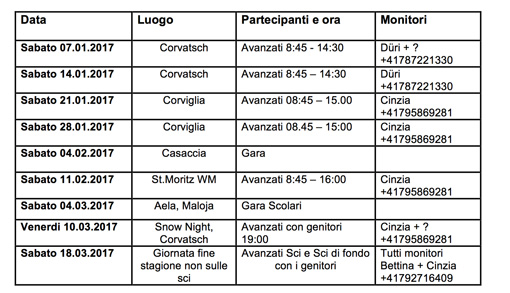 l’abbonamento di sci e il pranzo vanno a carico dei partecipanti