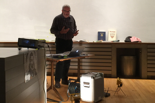 Giovedì 10 novembre nello studio fotografico di Soglio si è aperta la quattro giorni dedicata a due personaggi illustri che hanno abitato a Soglio niente meno che circa 400 anni fa. La conferenza è stata magistralmente condotta dall’emerito prof. Chasper Pult. Dopo il saluto iniziale da parte di Patrick Giovanoli, membro tra l’altro del comitato organizzativo dell’intera manifestazione, il prof. Pult è partito e per quasi un’ora e quarantacinque minuti ha parlato, mostrato slide, fatto battute e tenuto la folta platea, si parla di una sessantina di persone, con il fiato sospeso per la semplicità con cui riesce a passare da un testo letterario ad un dipinto.