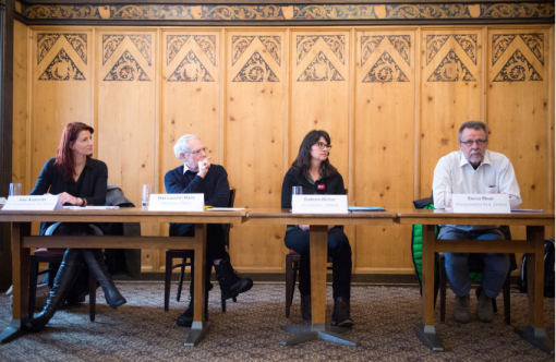 Da sinistra a destra: Aixa Andreetta (vicesindaca, San Vittore), Max Lüscher-Marty (economista, Zizers), Barbara Wülser (giornalista, Malans), Enrico Bisaz (medico, Zernez)
