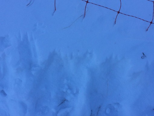 Tracce di unghioni aguzzi e grosse zampe impressionanti, nei pressi della recinzione, per una larghezza di circa due metri