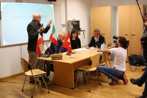 Presente all’incontro un nutrito gruppo di storici ed appassionati anche svizzeri, con il sindaco di Piuro Omar Iacomella in prima fila.