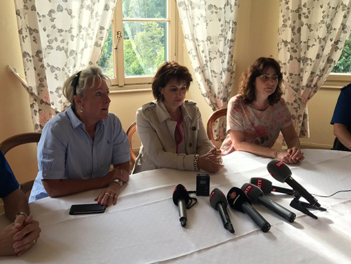 A sinistra la presidente del consiglio di Stato grigionese Barbara Janom Steiner, al centro Doris Leuthard presidente della Confederazione, a destra presidente del Comune di Bregaglia Anna Giacometti