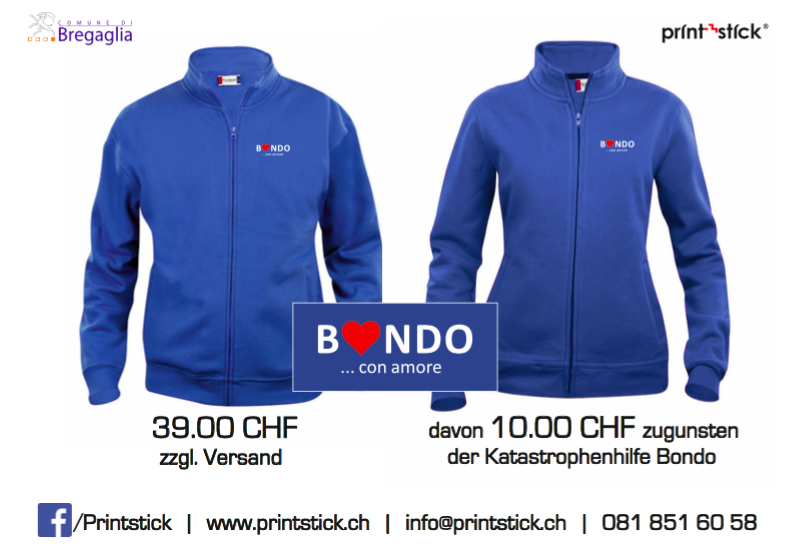 Si vedono sempre più felpe blu in Val Bregaglia. La collaborazione tra il Comune di Bregaglia e la ditta Printstick di Müstair dimostra una volta di più quanta solidarietà ci sia nei confronti della gente di Bondo.