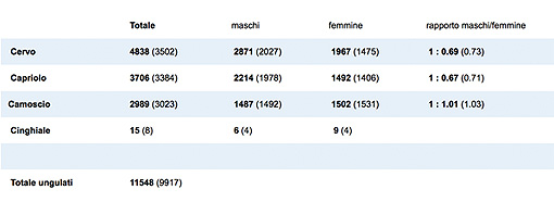 La caccia alta di quest’anno è stata caratterizzata da un numero elevato di cervi e di caprioli abbattuti e da un buon risultato nella caccia al camoscio. Ciononostante una caccia speciale al cervo è necessaria in tutte le regioni, mentre per quanto riguarda il capriolo una caccia speciale si rende necessaria solo in circa la metà delle regioni.