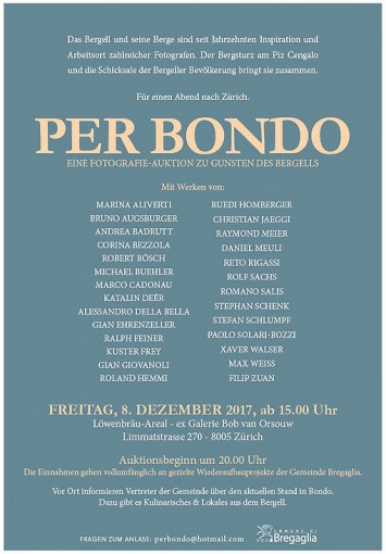 Si chiama “Per Bondo” ed è un’iniziativa congiunta di 28 fotografi svizzeri che hanno unito le forze per sostenere il villaggio della Val Bregaglia. Mettono all’asta le proprie opere finanzieranno progetti di ricostruzione in loco.