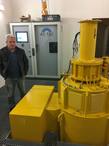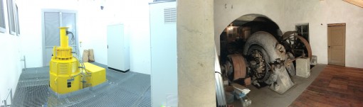 A destra la vecchia turbina Francis ad asse orizzontale, a sinistra la nuova Kaplan ad asse verticale