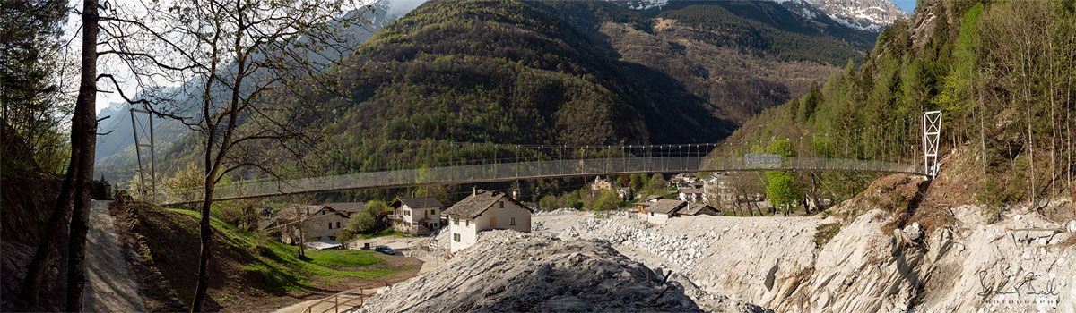 Aperto ufficialmente il ponte sospeso fra Bondo e Promontogno. Giovedì 26 aprile 2018. Clicca sull’immagine per ingrandirla.