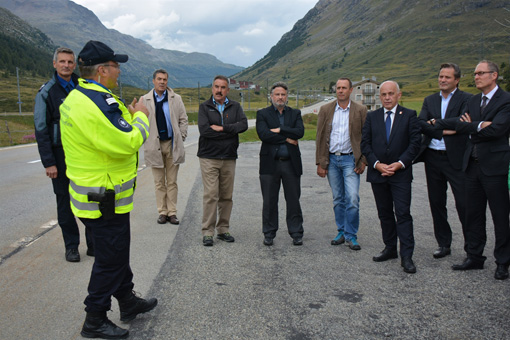 Il consigliere federale Ueli Maurer, il consigliere di stato Christian Rathgeb e il direttore dell’AFD Christian Bock si sono fatti mostrare l’impiego degli strumenti e dei metodi di controllo più moderni durante un’operazione di controllo eseguita in comune dalla Polizia cantonale dei Grigioni e dall’AFD (Corpo delle guardie di confine e DOGANA) nella zona di Lagalb / Diavolezza. Da team misti sono stati effettuati controlli approfonditi di persone, merci e veicoli. Del personale specializzato ha assistito l’operazione con un sistema di controllo a raggi x, un cane antidroga e un sistema di rilevamento di esplosivi.